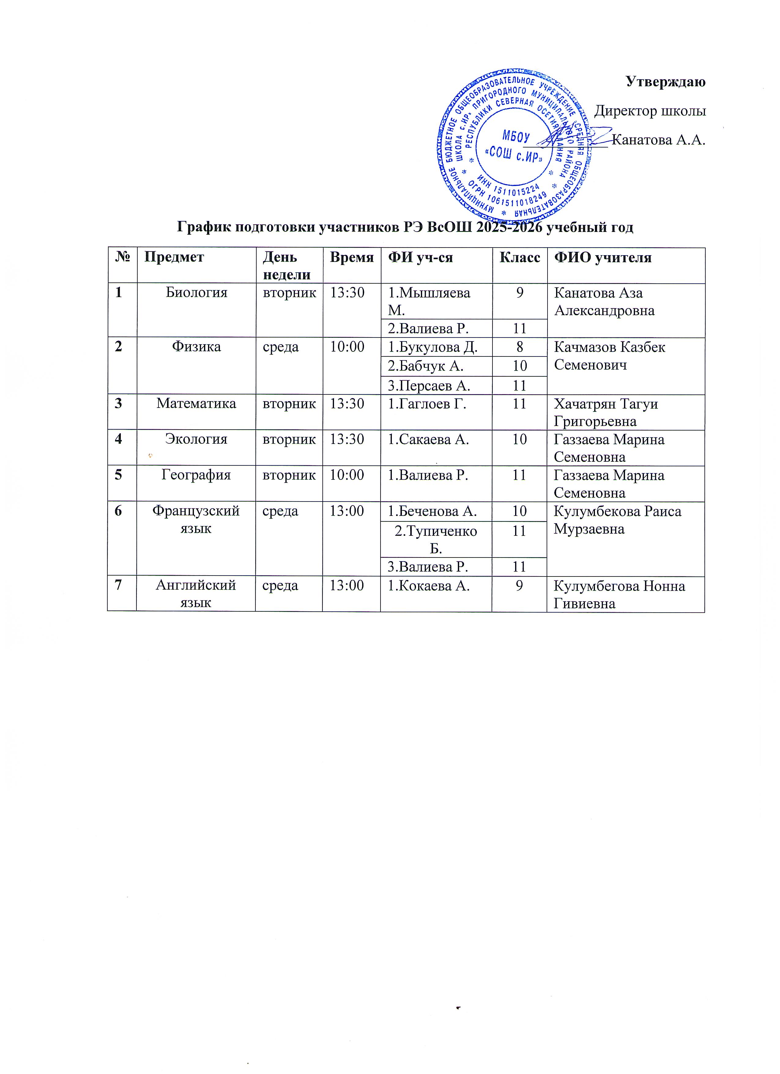 График подготовки участников РЭ ВсОШ 2025-2026 уч.год
